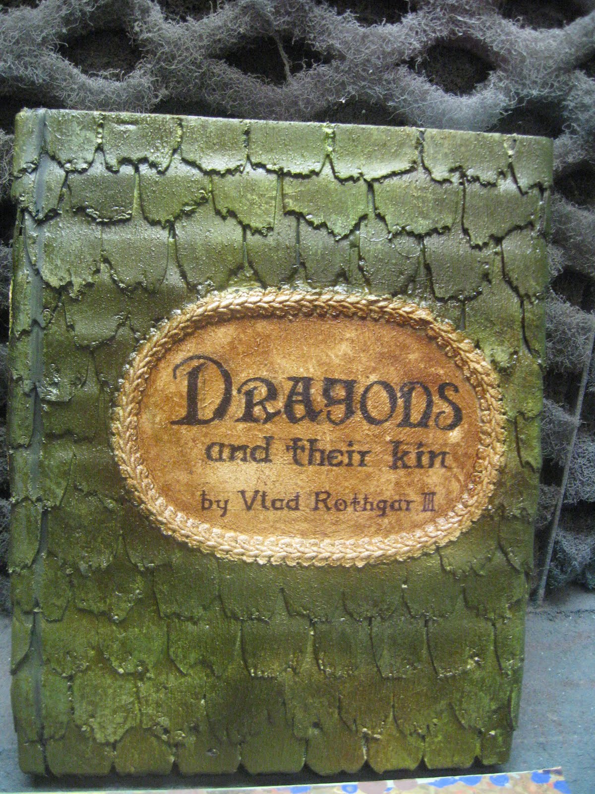 For my Wife's haunt this year, we decided to do a witches library.  She haunts inside, I haunt outside.  I thought every witches library ought to have a dragon bestiary, so I built the book, "Dragons and their Kin".  Since it is a dragon book, I thought it should be bound in dragon hide.  It's only natural.