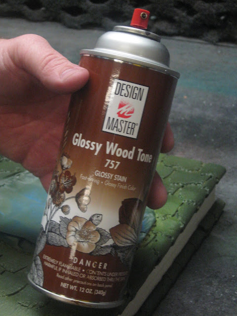 (if I could only have one color of spray paint in my paint kit, it would be Design Master: Glossy Wood Tone. It is a transparent brown color that allows the original colors to show through and it flows before it dries unlike regular spray paint that practically is dry by the time it hits the surface)